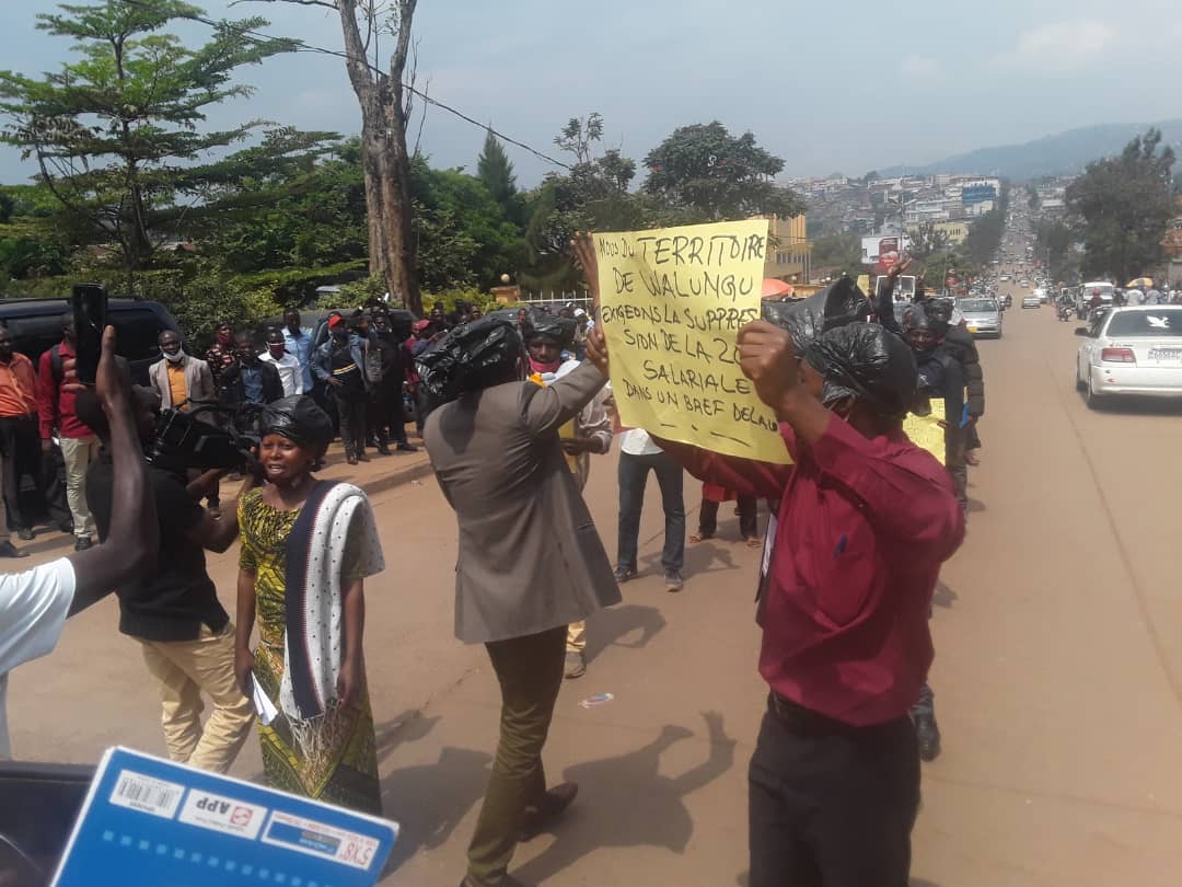Dans le respect strict des mesures barrières, une délégation de vignts enseignants en provenance de différents territoires du Sud-Kivu, soutenus par leurs collègues de la ville de Bukavu, se sont présentés ce jeudi 17 juin 2021, devant le bureau de l’assemblée provinciale. Après plusieurs manifestations et grèves observées dans des territoires de la province, les enseignants décident finalement de venir en délégation de 20 personnes pour présenter leur mémo et déclarer la suppression des Zones salariales.