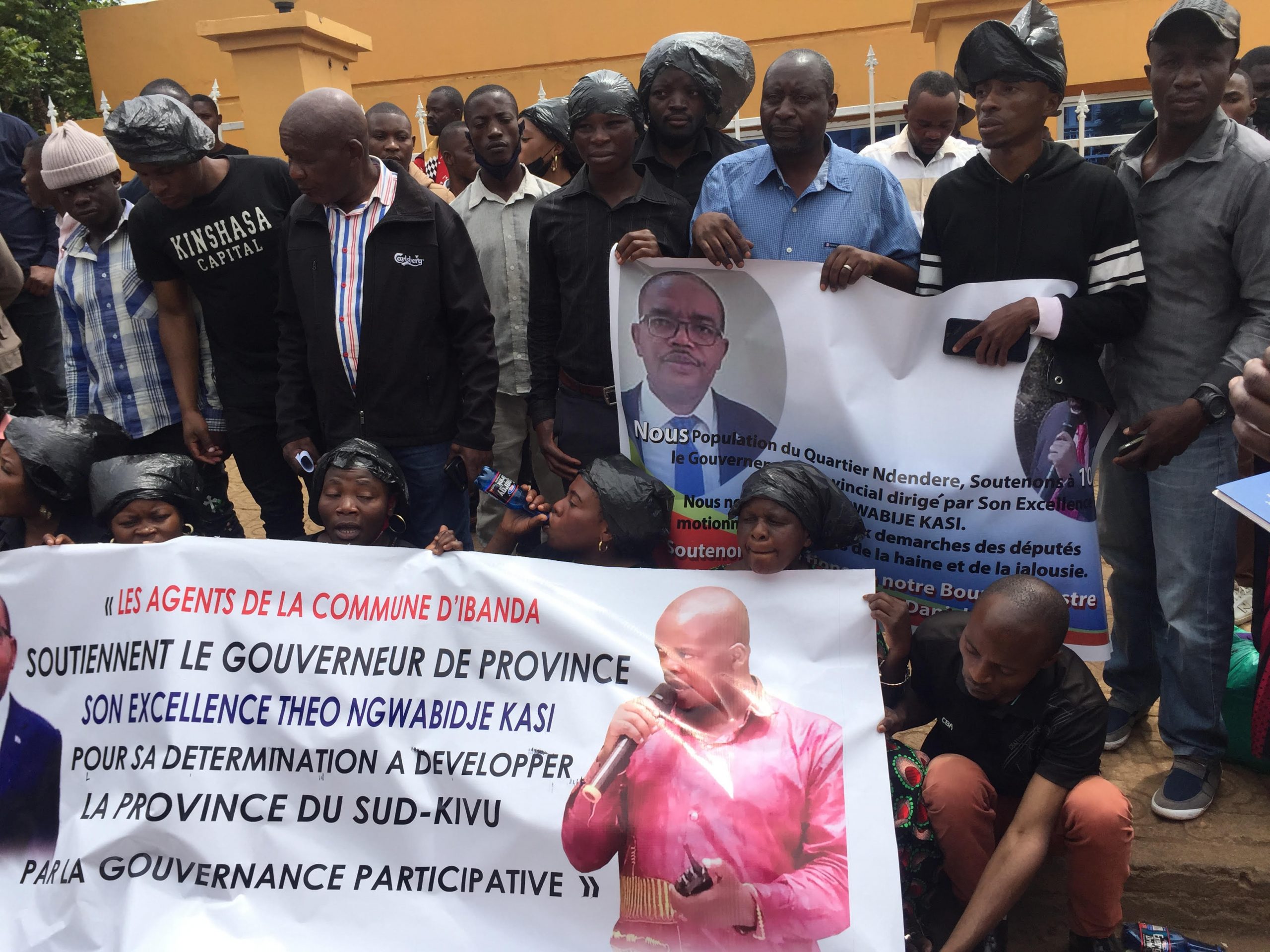 Après qu’une motion de censure a été déposée par certains élus provinciaux, certaines personnes pro-Ngwabidje ont envahi l’Assemblée Provinciale dans la matinée pour exprimer leur soutien au Gouverneur Ngwabidje. Visiblement, des agents de toutes les 3 communes de la ville qui manifestent pour dire non à la motion.